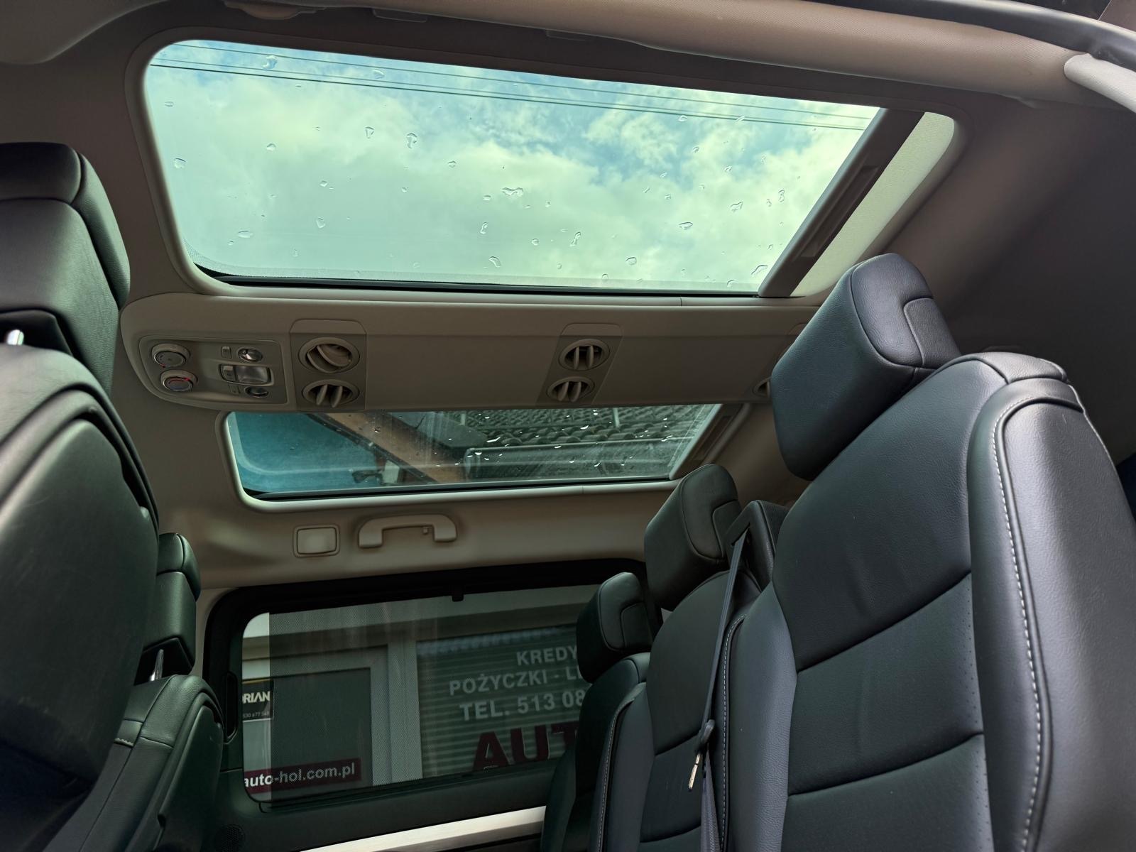 klimatyzacja automatyczna, ABS, ESP, Airbag, elek. lusterka, elekt. szyby, halogeny, światła do jazdy dziennej LED, wspomaganie kierownicy, radio, centralny zamek, wielofunkcyjna kierownica, komputer pokładowy, USB, kolorowy dotykowy ekran multimediów, alufelgi, nawigacja, czujniki parkowania, elekt. składane lusterka, 8 miejsc, automatyczna skrzynia biegów, podgrzewane fotele, dostęp bezkluczykowy, kamera cofania, hak, skórzana tapicerka, dach napnoramiczny