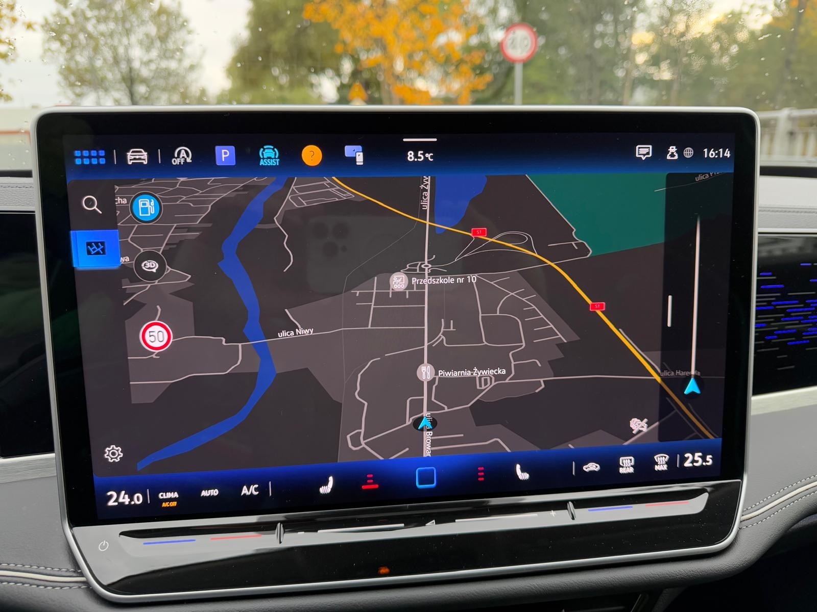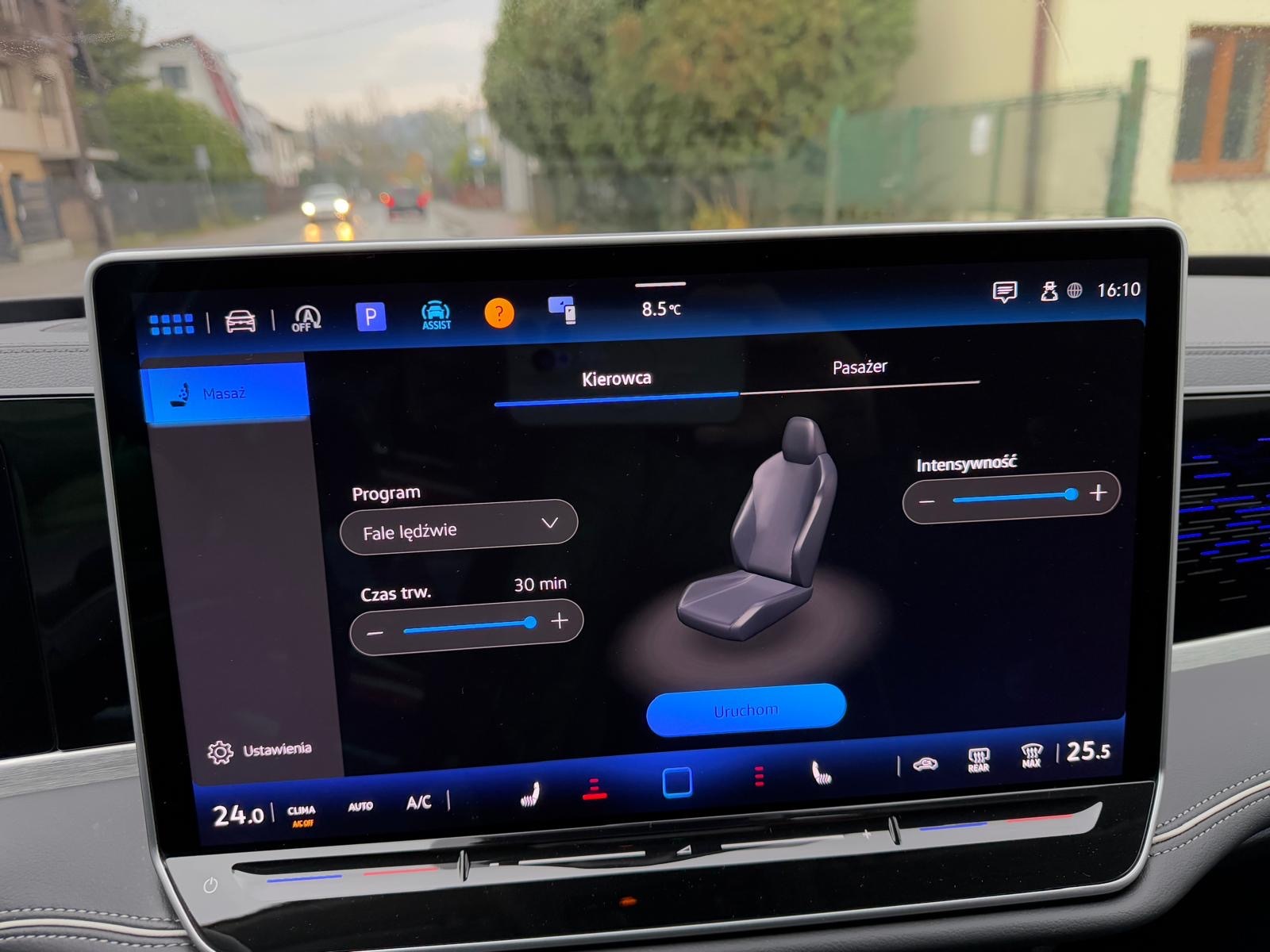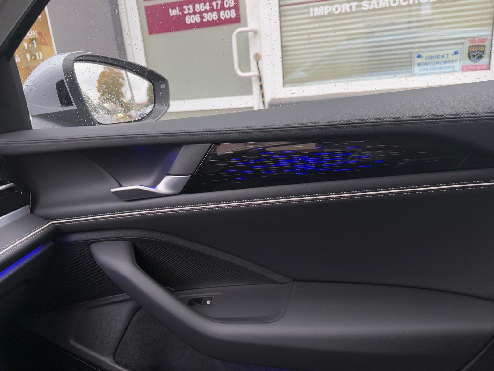 reflektory LED, alufelgi, klimatyzacja automatyczna, dotykowy kolorowy ekran multimediów, bluetooth, tempomat, skórzana wielofunkcyjna kierownica, automatyczna skrzynia biegów DSG, czujniki parkowania, podgrzewane fotele, czujnik zmierzchu, ładowarka indukcyjna, USB, dostęp bezkluczykowy, kamera cofania, lakier metalik, nawigacja, elekt. składane lusterka, automatyczne parkowanie, elekt. sterowane fotele, oświetlenie ambientowe, ładowarka indukcyjna, wyświetlacz head-up, virtual cockpit